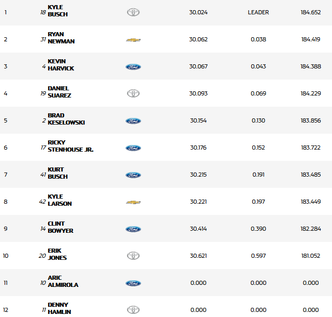 That's actually a pretty surprising top 12. Newman, Suarez, Stenhouse, Bowyer, and especially Almirola- all good runs