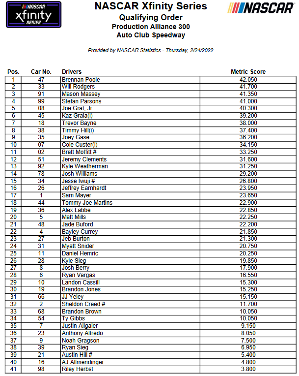 Wow, the Xfinity cars are faster than the Cup cars.pole... Kaulig/Hemric