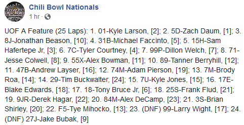 The Chili Bowl has never believed in time trials, everything is done by pill draw.