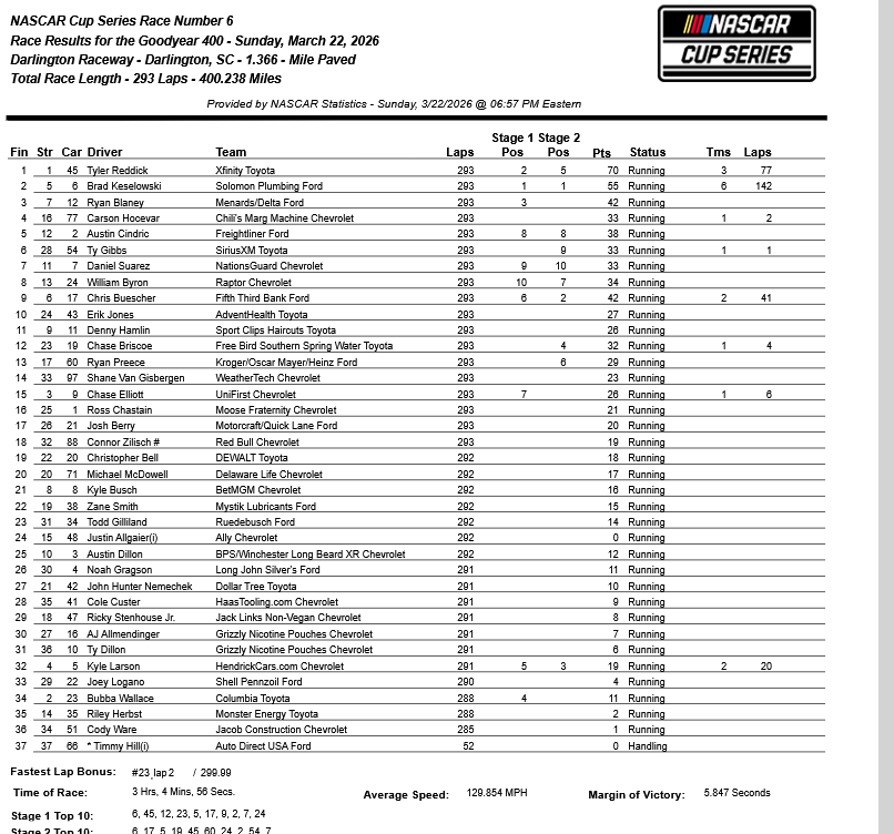 Hey, NASCAR, see what happens when you give race winners sufficient points? Dominant drivers can get some separation. And with a minmal reset, they have every reason to try to stay there.