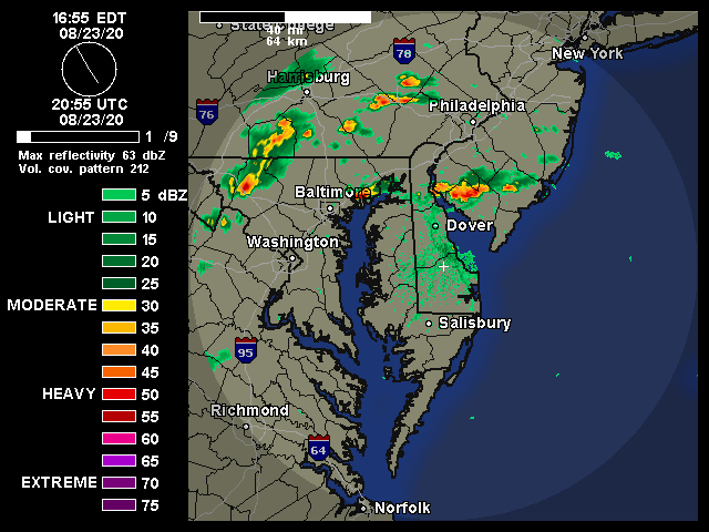 Here's what the radar looks like. The track is pretty much exactly where the dot for Dover is.
