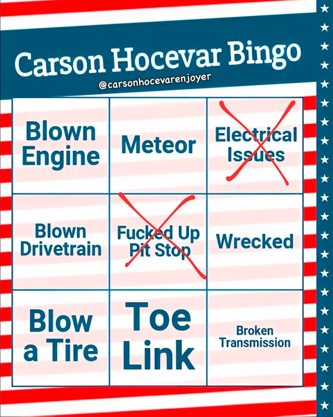 And just lost 3 spots on pit road. Should be a good points day, but Chevy cant compete with Toyota right now.