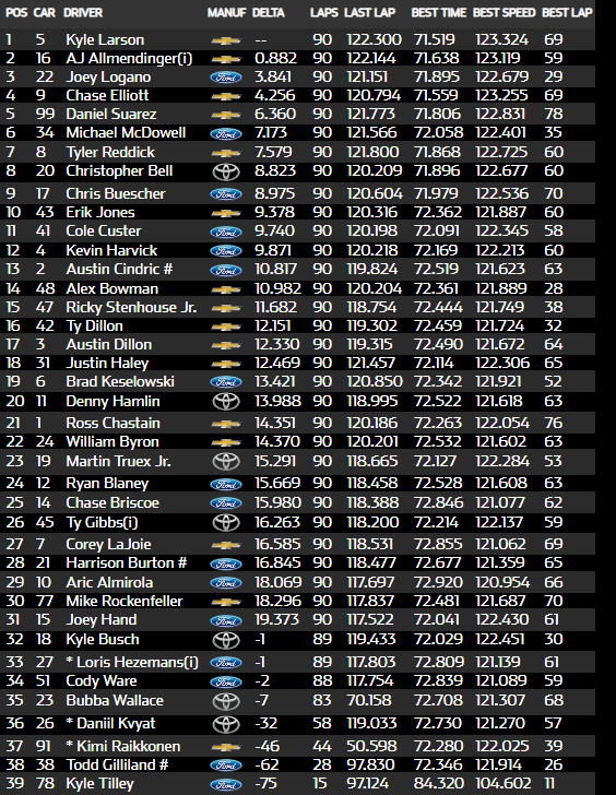 Chase has the worst crew chief of all time though! If he had the stuff Larson gets he'd be the GOAT instead of 2nd fiddlePretty good for a hobby cup driver that is said to fall out of the seat almost every week.