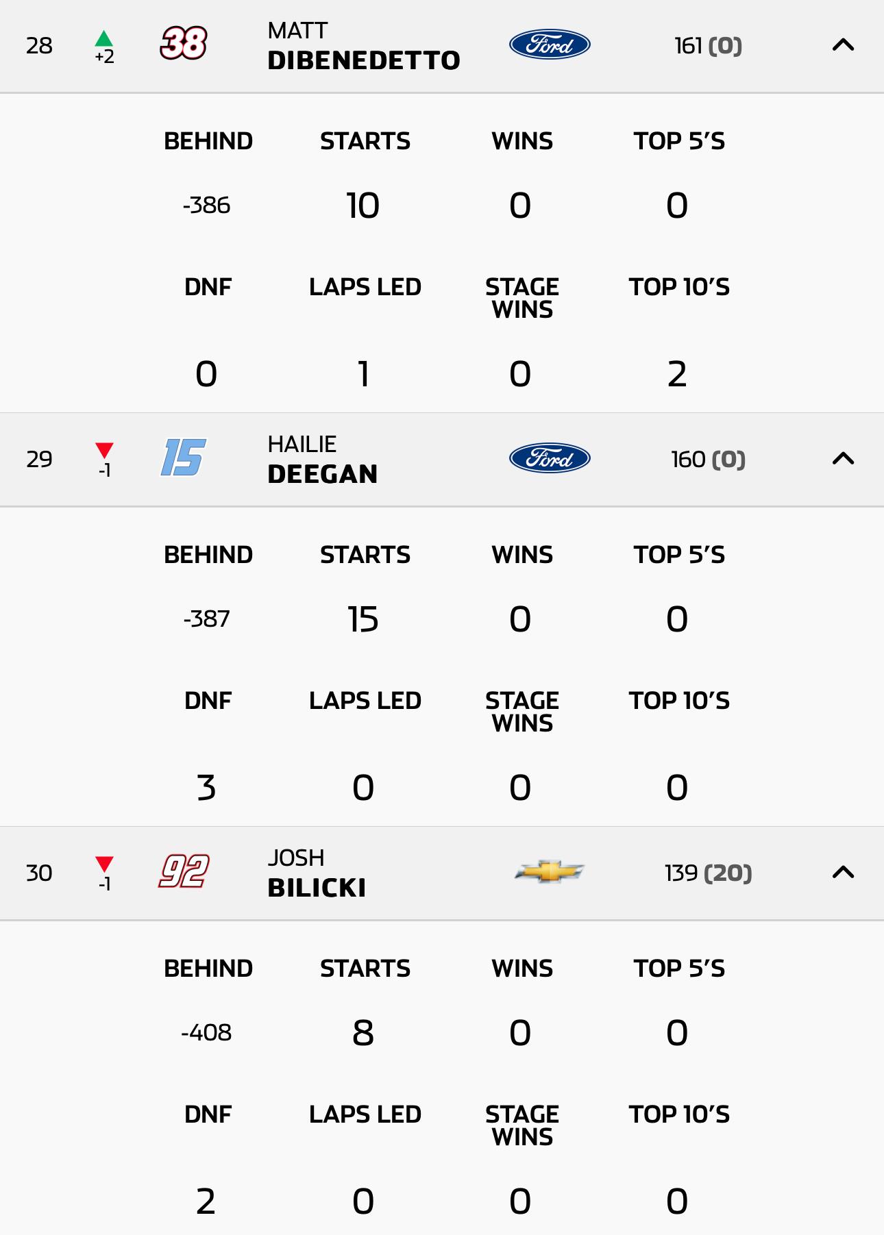 It was the same in trucks last year, where mid-year she had less points than one or two drivers that hadn't even entered every race.How bad is it?