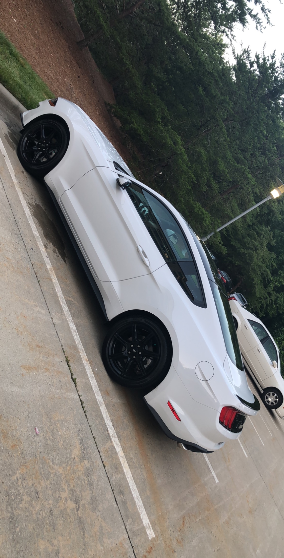 It’s the 4 cylinder 10 SPEED , I love black rims on white cars make them pop to me.. but you can get a lot of power out of these turbo engines.. she had the 2015 and traded it in for the blacktop package.. but Thanku. She loves it.. and people don’t tell me manufactures don’t matter in NASCAR anymore.. we roll up to races in this mustang and get out in Kyle Busch gear and fans talk junk all the time and look at us funny lol.. people still care