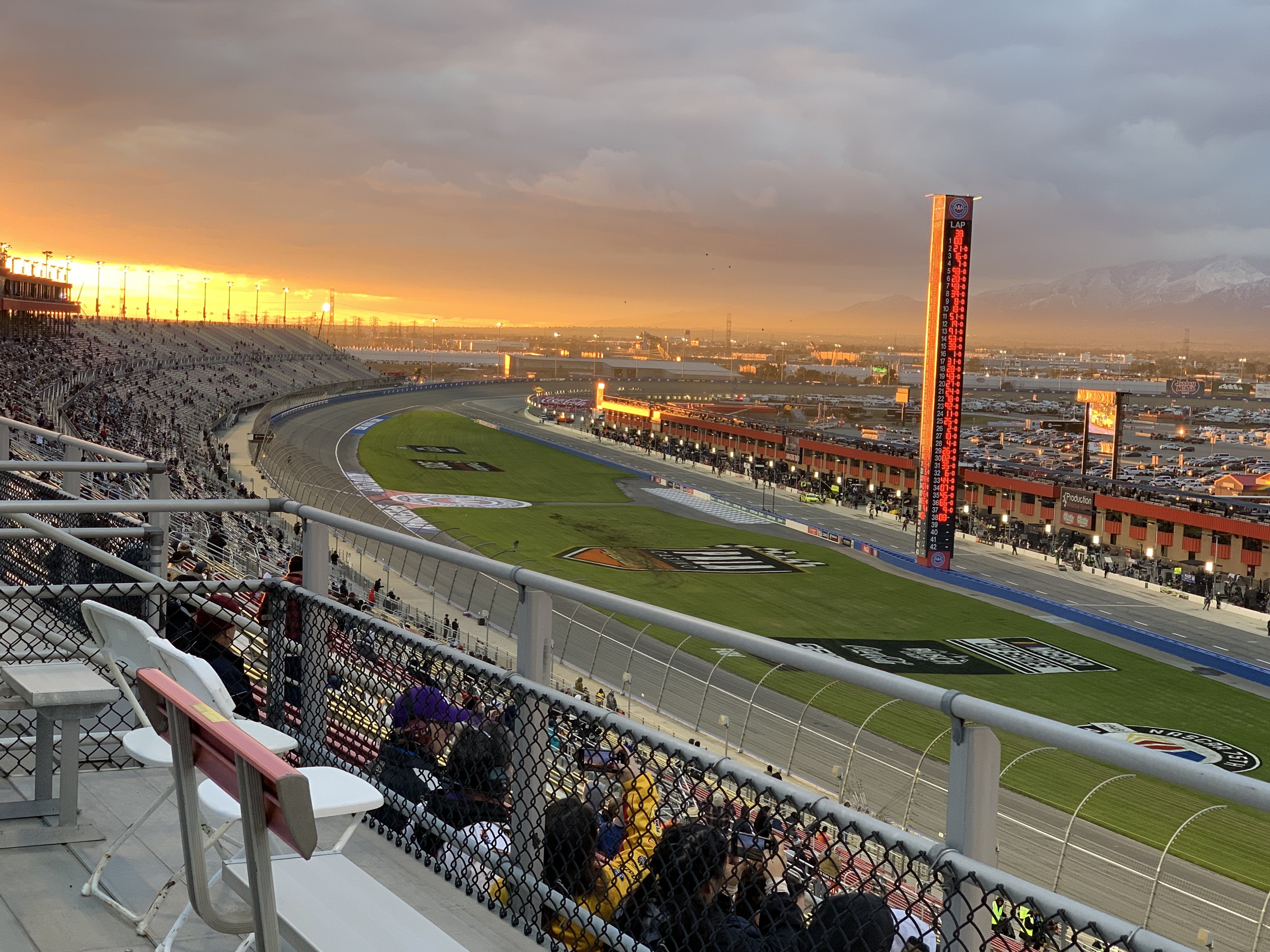 Nice track pic of the late great Auto Club Speedway catching the sun breaking thru on a bombardment of weather week.