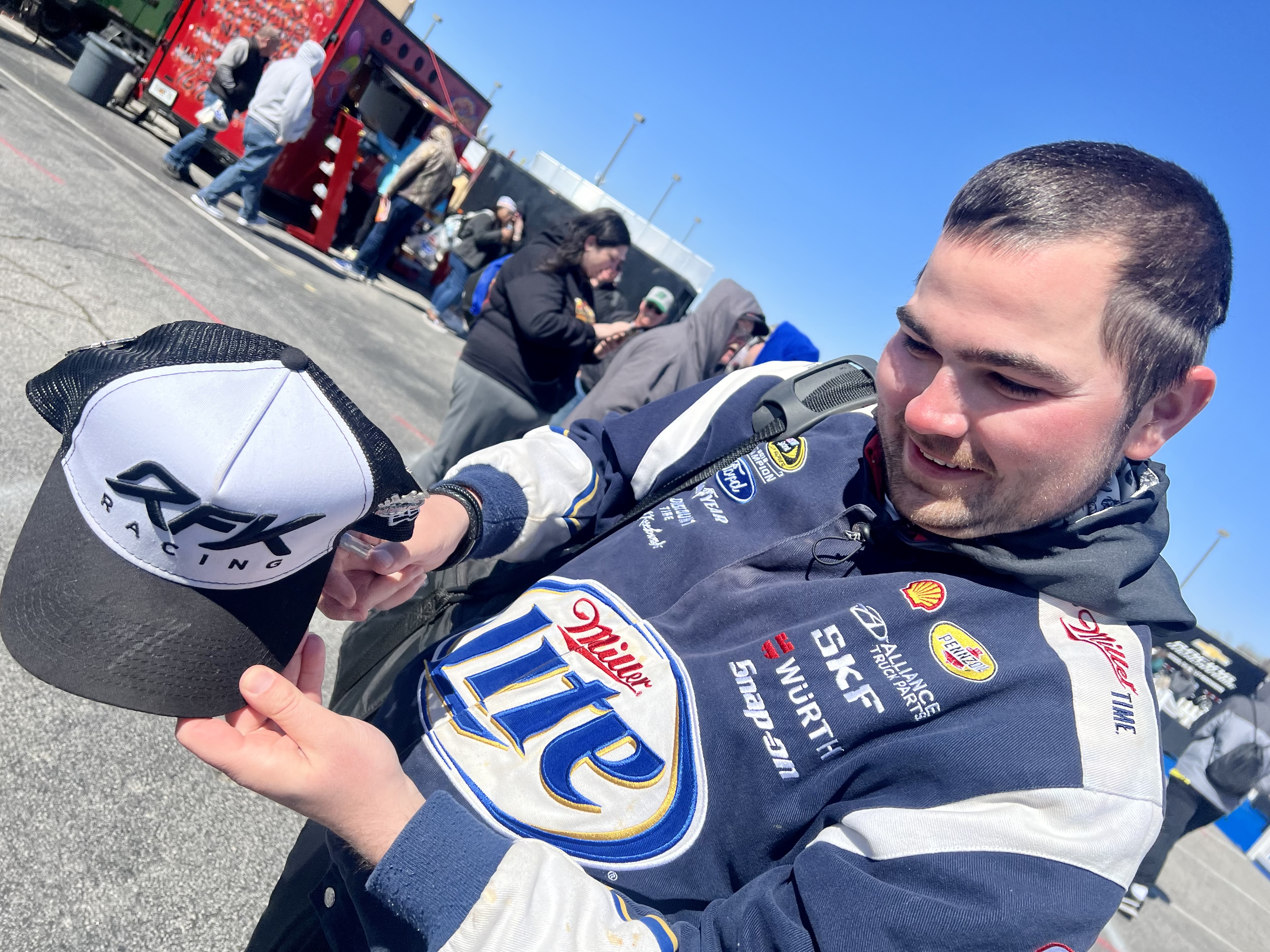 So it was a silver sharpie; I brought one after the last time I got my hat autographed in a color that barely shows up. For some reason when Brad signed it it barely worked but when Josh Berry signed my Race pack later, it came out perfect. Weird