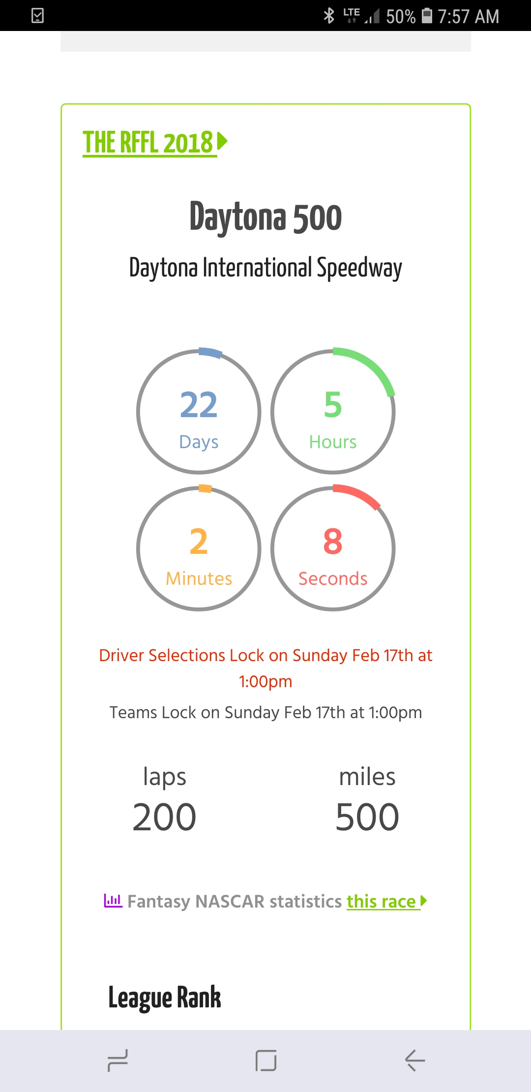 You're shown as a member of The RFFL 2019 league in the previous version of the game on the Fantasy Racing Cheat Sheet site (https://fantasyracingcheatsheet.com).