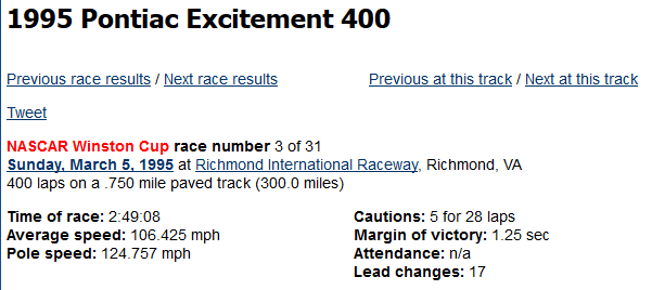 Yeah, no aero, no windshield, open wheels and a little track that produced blinding speeds of about 50 mph. Lots of paint traded, some bicycling after cars collided, but the racing was white knuckle competitive. I watched Dale Earnhardt race for years, no gimmicks and nobody really cared about the package. Something has been lost over the years. Several years back, I watched the 18 car follow Danica for 30 laps at PIR, aero push so bad he like to never got around her. the tinkering continues. Moto-Gp races typically draw 100 thousand or more, often the fans sit in the rain, they watch competitive edge of your seat racing with no gimmicks ... its out there.